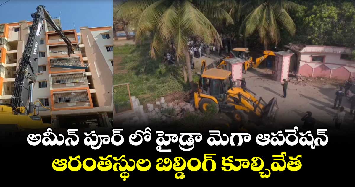 సంగారెడ్డి జిల్లా అమీన్పూర్లో హైడ్రా మరోసారి పంజా విసిరింది. కబ్జాదారుల గుండెల్లో రైళ్లు పరిగెత్తిస్తూ.. భారీ బందోబస్తు మధ్య భారీ ఆపరేషన్ చేపట్టింది. ఐలాపురం గ్రామంలోని ప్రభుత్వ భూములను కాపాడేందుకు రంగంలోకి దిగిన అధికారులు.. నిబంధనలను తుంగలో తొక్కిన అక్రమ కట్టడాలను నేలమట్టం చేస్తున్నారు.