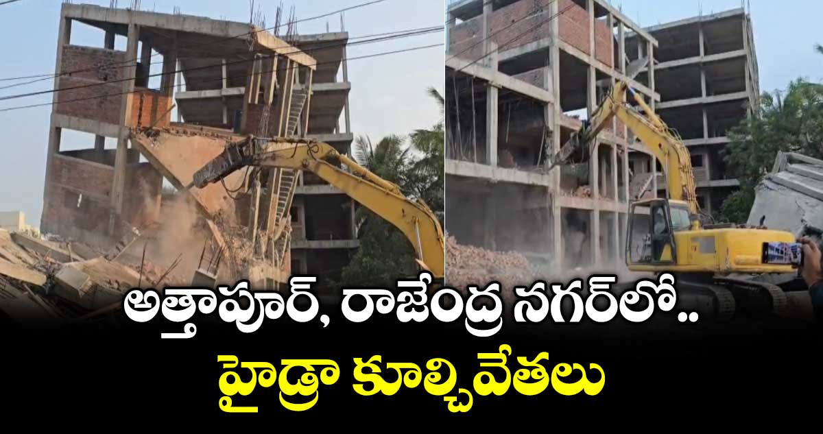 రాజేంద్రనగర్ పరిధిలోని శివరాంపల్లి రాఘవేంద్ర కాలనీలో అక్రమ నిర్మాణాలను హైడ్రా కూల్చివేసింది. బుధవారం (ఏప్రిల్ 1) తెల్లవారుజూము ఆరు గంటల నుంచే కూల్చివేతలు చేపట్టింది. అక్రమంగా నిర్మిస్తున్న నాలుగు నుంచి ఐదు అంతస్తుల భవనాలను నేలమట్టం చేశారు హైడ్రా సిబ్బంది. ఎలాంటి అవాంఛనీయ ఘటనలు జరగకుండా పోలీసు బందోబస్తు మధ్య కూల్చివేతలు చేపట్టారు అధికారులు.
