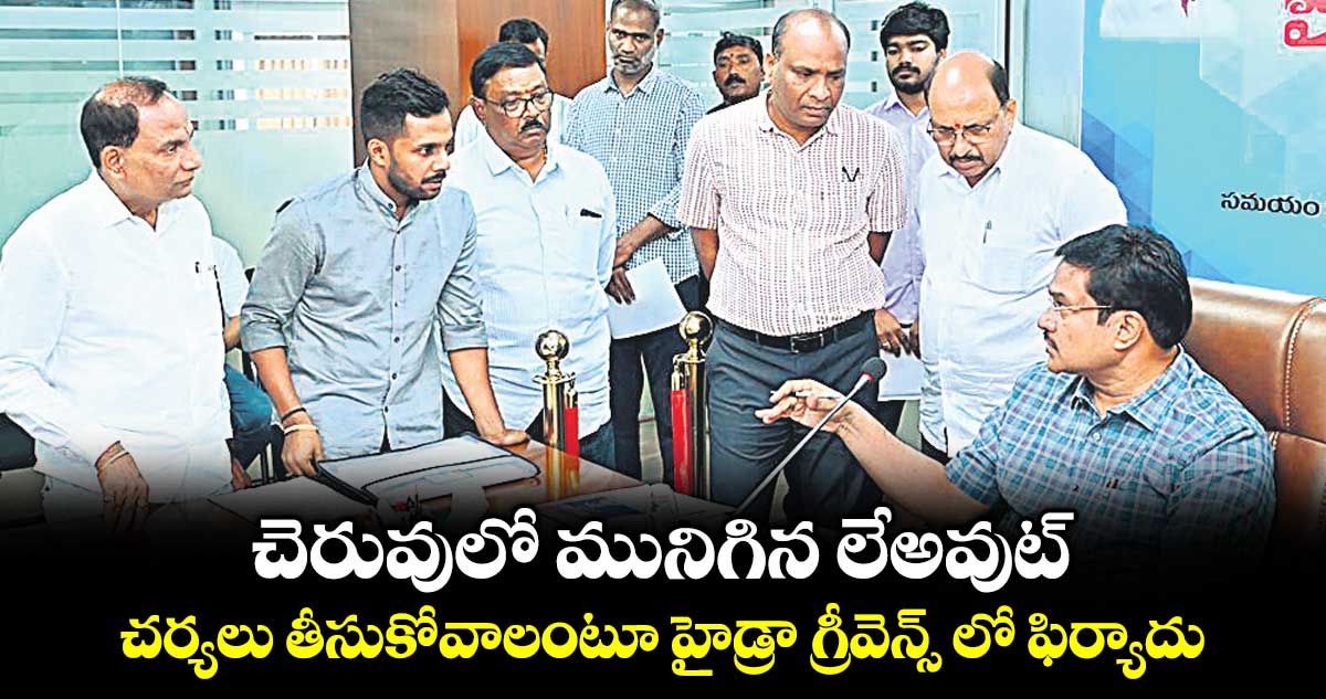 చెరువు ఎఫ్టీఎల్ను నిర్ధారించి తమ లేఅవుట్లు మునుగకుండా చర్యలు తీసుకోవాలని కమిషనర్ను కోరారు. పటాన్ చెరు మండలం పాటి గ్రామంలో 92 ఎకరాల విస్తీర్ణంలో 1,100 ప్లాట్లతో ఏర్పాటు చేసిన ఆనందనగర్ కాలనీలో 32 ఎకరాలను స్థానిక ప్రజాప్రతినిధుల అండతో కొందరు ఆక్రమించి మరో లేఅవుట్ వేసి అమ్మేందుకు ప్రయత్నిస్తున్నారని ప్లాట్ యజమానులు ఫిర్యాదు చేశారు.