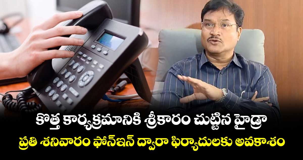ప్రతి శనివారం ఫోన్ ఇన్ ద్వారా ఫిర్యాదులు స్వీకరించనున్న హైడ్రా అధికారులు. హైడ్రా కమిషనర్ తో నేరుగా మాట్లాడి ఫిర్యాదులు చేసే అవకాశం కల్పిస్తున్నారు. ఈ శనివారం నుంచే (ఫిబ్రవరి 07) ఫోన్-ఇన్ కార్యక్రమం ప్రారంభ అవుతున్నట్లు తెలిపారు. ప్రతి శనివారం మధ్యాహ్నం 12 నుంచి 1 గంట వరకు ఫోన్ ఇన్ కార్యక్రమం నిర్వహించనున్నట్లు చెప్పారు.