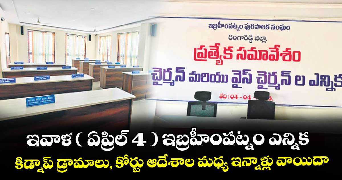 ఇబ్రహీంపట్నం, వెలుగు: అనేక వివాదాలు, హైకోర్టు ఆదేశాల మధ్య వాయిదా పడుతూ వస్తున్న ఇబ్రహీంపట్నం మున్సిపల్ చైర్పర్సన్, వైస్ చైర్పర్సన్ ఎన్నికలు ఇవాళ జరగనున్నాయి. ఇందుకోసం అధికారులు సర్వం సిద్ధం చేశారు. మొత్తం 24 వార్డుల్లో బీఆర్ఎస్- 13, కాంగ్రెస్ -8, బీజేపీ- 2, ఇండిపెండెంట్- 1 స్థానాలు గెలుచుకోగా, క్యాంపు రాజకీయాల నడుమ 19వ వార్డు బీఆర్ఎస్ అభ్యర్థి ఆకుల యాదగిరి, ఇండిపెండెంట్ అభ్యర్థి మురళీకృష్ణ అదృశ్యమయ్యారంటూ వారి కుటుంబ సభ్యులు పోలీసులకు ఫిర్యాదు చేయడం సంచలనం రేపింది.