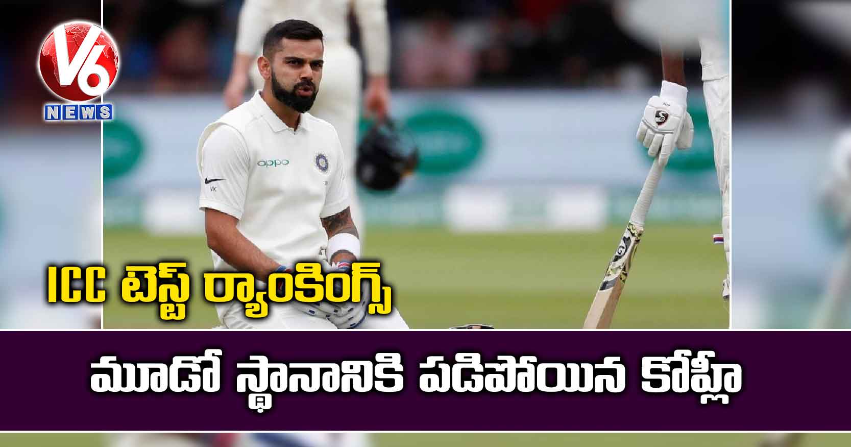 ICC టెస్టు ర్యాంకింగులను విడుదల చేసింది. లేటెస్ట్ గా రిలీజ్ చేసిన బ్యాట్స్ మెన్ ర్యాంకింగ్స్ లో ముగ్గురు ఇండియా ఆటగాళ్లు స్థానం సంపాదించారు. ఇందులో టీమిండియా కెప్టెన్ విరాట్ కోహ్లీ మరో స్థానం దిగజారాడు. మూడో స్థానంలో ఉన్న ఆస్ట్రేలియా బ్యాట్స్ మెన్ స్టీవ్ స్మిత్ రెండో స్థానానికి ఎగబాకాడు. దీంతో.. కోహ్లీ స్థానం మూడో స్థానానికి పడిపోయింది. ఫస్ట్ ప్లేస్ ను న్యూజిలాండ్ కెప్టెన్ కేన్ విలియంసన్ దక్కించుకున్నాడు.