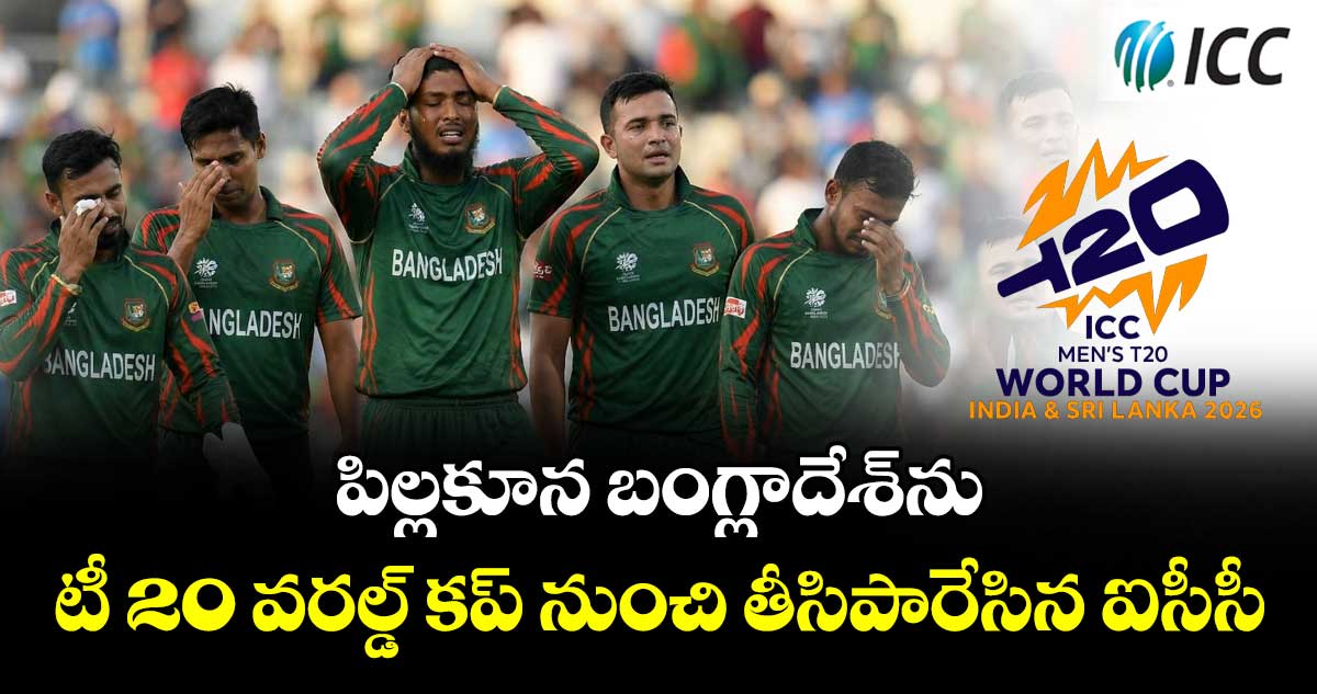 బంగ్లాదేశ్కు ఐసీసీ బిగ్ షాక్ ఇచ్చింది. ఇండియాలో వరల్డ్ కప్ మ్యాచులు ఆడేందుకు నిరాకరించిన బంగ్లాదేశ్ను టీ20 వరల్డ్ కప్ నుంచి భర్తరఫ్ చేసింది. గ్రూప్-సీలో బంగ్లాదేశ్ స్థానంలో స్కాట్లాండ్కు అవకాశం కల్పించింది. ఈ మేరకు శనివారం (జనవరి 24) ఐసీసీ అధికారిక ప్రకటన చేసింది.
