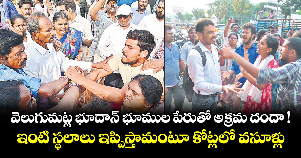 ఖమ్మం, వెలుగు : ఖమ్మం నగరాన్ని ఆనుకొని ఉన్న వెలుగుమట్ల భూదాన్ భూముల్లో భారీ అక్రమ దందా వెలుగుచూసింది. కొందరు వ్యక్తులు ఇంటి స్థలాల పేరుతో పేదల నుంచి కోట్లాది రూపాయలు వసూలు చేశారు. ఒక్కొక్కరికి 100 గజాల స్థలం ఇప్పిస్తామంటూ రూ.50 వేల నుంచి రూ.5 లక్షల వరకు వసూళ్లకు పాల్పడ్డారు. ఒకే స్థలాన్ని ముగ్గురు, నలుగురికి అమ్మిన ఘటనలు సైతం ఉన్నాయి.