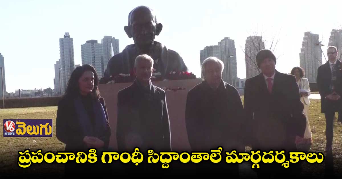 ప్రపంచం ఎదుర్కొంటున్న హింస, సరిహద్దు ఘర్షణ వంటి అనేక సంక్షోభాలు సద్దుమణగడానికి మహాత్మ గాంధీ ఆచరించిన అహింస,శాంతి సిద్ధాంతలు దోహదం చేస్తాయని భారత విదేశీ వ్యవహరాల శాఖ మంత్రి ఎస్ . జై శంకర్ అన్నారు. న్యూయార్క్లోని ఐక్యరాజ్యసమితి ప్రధాన కార్యాలయంలో మహాత్మా గాంధీ విగ్రహాన్ని ఐక్యరాజ్యసమితి సెక్రటరీ జనరల్ ఆంటోనియో గుటెర్రెస్ తో కలిసి ఎస్ జైశంకర్ ఆవిష్కరించారు. అహింస, శాంతి, నిజాయితీలకు ప్రతిరూపం గాంధీ మహాత్ముడు అని జై శంకర్ కొనియాడారు. ఐక్యరాజ్యసమితిలో ఆయన విగ్రహాన్ని నెలకొల్పడం ద్వారా గాంధీజీ పేర్కొన్న ఆదర్శాలను ఎప్పటికప్పుడు గుర్తు చేసుకొంటున్నట్లవుతుందని జైశంకర్ తెలిపారు. అటు సామ్రాజ్యవాదంపై మహాత్మా గాంధీకి ఉన్న వ్యతిరేకతే ఐక్య రాజ్య సమితికి పునాది అని గుటెరస్ చెప్పారు.