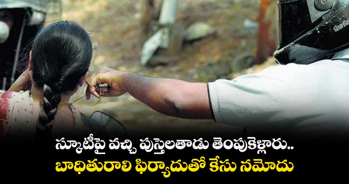 శంకర్పల్లి, వెలుగు: పొలం నుంచి రాత్రి ఇంటికి వెళ్తున్న మహిళ మెడలోని పుస్తెలతాడును స్కూటీపై వచ్చిన దుండగులు తెంపుకెళ్లిన ఘటన శంకర్పల్లి టౌన్లో చోటు చేసుకుంది. శంకర్పల్లి ఎస్ఐ సంతోష్రెడ్డి తెలిపిన ప్రకారం.. సింగాపురానికి చెందిన మణెమ్మ(49) సోమవారం ఉదయం పొలం పనులకు వెళ్లింది. రాత్రి ఇంటికి వస్తుండగా.. ఎల్లో కప్ కేఫ్ వద్ద గుర్తు తెలియని ఇద్దరు దుండగులు స్కూటీపై వచ్చి మణెమ్మ మెడలోంచి మూడు తులాల పుస్తెలతాడు లాక్కొని పారిపోయారు. బాధితురాలి ఫిర్యాదు మేరకు కేసు నమోదు చేసి