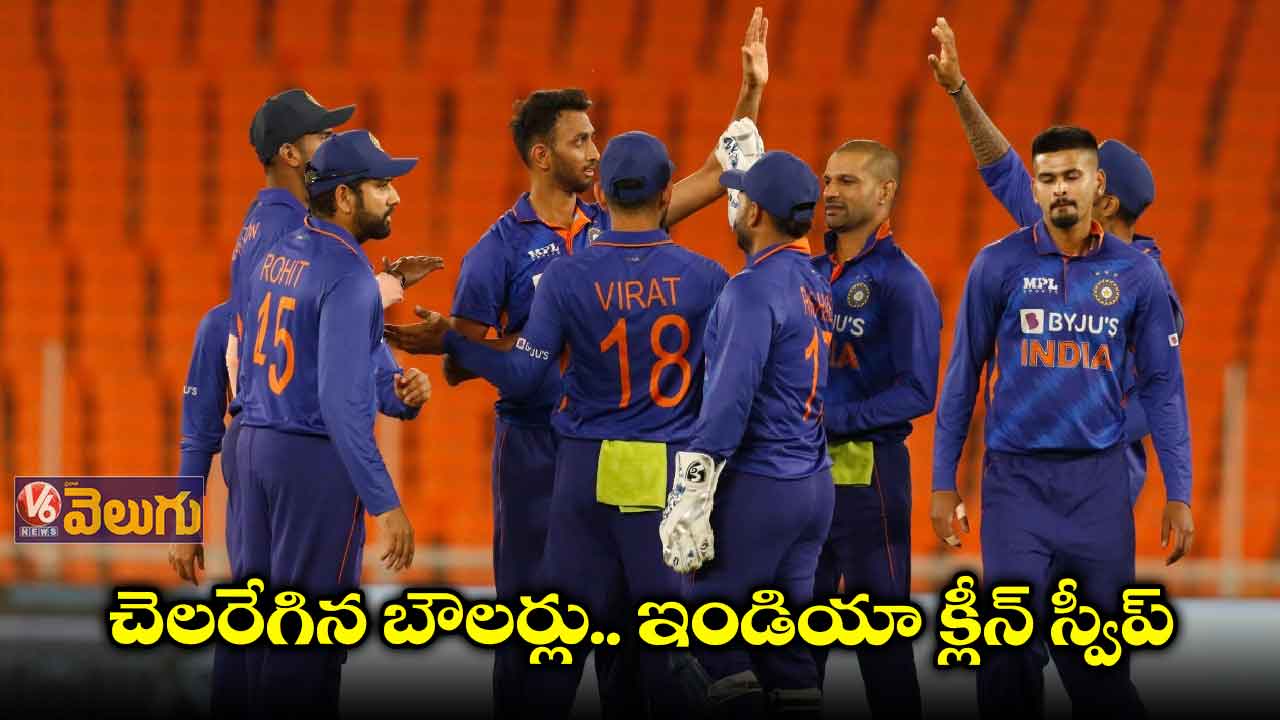 థర్డ్ వన్డేలో వెస్టిండీస్ పై ఇండియా గ్రాండ్ విక్టరీ కొట్టింది. 266 పరుగుల లక్ష్యంతో బ్యాటింగ్ కు దిగిన వెస్టిండీస్ ను 169 పరుగులకు కుప్పకూల్చింది భారత్. 96 పరుగుల తేడాతో విజయం సాధించింది. మూడు వన్డేల సిరీస్ ను క్లీన్ స్వీప్ చేసింది. భారత బౌలర్ల దాటికి వెస్టిండీస్ బ్యాట్స్ మెన్ 37.1 ఓవర్లకే 169 పరుగులకు చేతులెత్తేశారు. . నికోలస్ పురాన్ 34,ఓడియన్ స్మిత్ 36 అల్జారీ జోసఫ్ 29 మినహా ఎవరు రాణించలేదు. దీంతో 169 పరుగులకే ఆలౌట్ అయ్యింది. భారత బౌలర్లలో మహమ్మద్ సిరాజ్ 3, ప్రిసిద్ధ కృష్ణ 3, కుల్దీప్ యాదవ్ 2, దీపక్ చాహర్ 2 వికెట్లు తీశారు. అంతకు ముందు టాస్ గెలిచి బ్యాటింగ్ చేసిన ఇండియా 50 ఓవర్లలో 265 పరుగులకు ఆలౌట్ అయ్యింది. శ్రేయాస్ అయ్యర్, 80, రిషబ్ పంత్ 56, వాషింగ్టన్ సుందర్ 33,దీపక్ చాహర్ 38 పరుగులు చేశారు.వెస్టిండీస్ బౌలర్లలో జేసన్ హోల్డర్ 4, వాష్ 2, జోసఫ్ 2, స్మిత్, అలెన్ లకు చెరో వికెట్ పడ్డాయి.