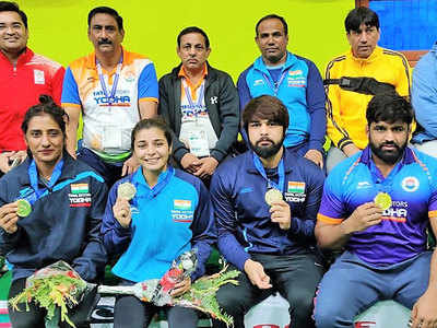రెజ్లర్లు నాలుగు గోల్డ్ మెడల్స్ గెలిచారు. సత్యవర్త్ కడియన్(97 కేజీ ఫ్రీ స్టయిల్), సుమిత్ మాలిక్(125 కేజీ ఫ్రీ స్టయిల్), గుర్షన్ప్రీత్కౌర్(విమెన్స్ 76 కేజీ), సరిత మోర్(విమెన్స్ 57 కేజీ) గోల్డ్ మెడల్స్ గెలిచారు.