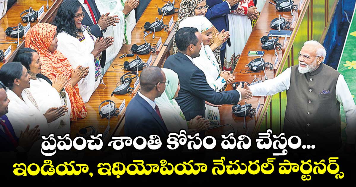 ఇండియా, ఇథియోపియా పురాతన నాగరికతలు కలిగిన దేశాలని మోదీ పేర్కొన్నారు. రెండు దేశాల మధ్య సారూప్యతలు ఉన్నాయని తెలిపారు. ‘‘భారత జాతీయ గేయం ‘వందేమాతరం’, ఇథియోపియా జాతీయ గీతం.. రెండూ మన సొంతగడ్డను మాతృభూమిగా సూచిస్తాయి. మన వారసత్వం, సంస్కృతి, ప్రకృతి సౌందర్యాల విషయంలో గర్వపడేలా.. మాతృభూమిని సంరక్షించేలా స్ఫూర్తినిస్తాయి. మనవి శక్తివంతమైన ప్రజాస్వామ్య దేశాలు. ఇథియోపియన్ కాఫీ, ఇండియన్ టీ లాగా మన స్నేహబంధం మరింత బలపడుతున్నది” అని అభివర్ణించారు. ఇథియోపియా అభివృద్ధికి వేలాది మంది ఇండియన్ టీచర్లు కృషి చేస్తున్నారు. ఇండియన్ కంపెనీలు టెక్స్టైల్, మాన్యుఫ్యాక్చరింగ్, అగ్రికల్చర్, హెల్త్ తదితర రంగాల్లో రూ.వేల కోట్ల పెట్టుబడులు పెట్టాయి. 75 వేల ఉద్యోగాలను సృష్టించాయి. రెండు దేశాలకూ వ్యవసాయమే వెన్నెముక.. అందుకే నాణ్యమైన విత్తనాలు, ఉత్తమ ఇరిగేషన్ సిస్టమ్స్, భూపరిరక్షణకు రెండు దేశాలు కలిసి పనిచేయాలి” అని పిలుపునిచ్చారు.