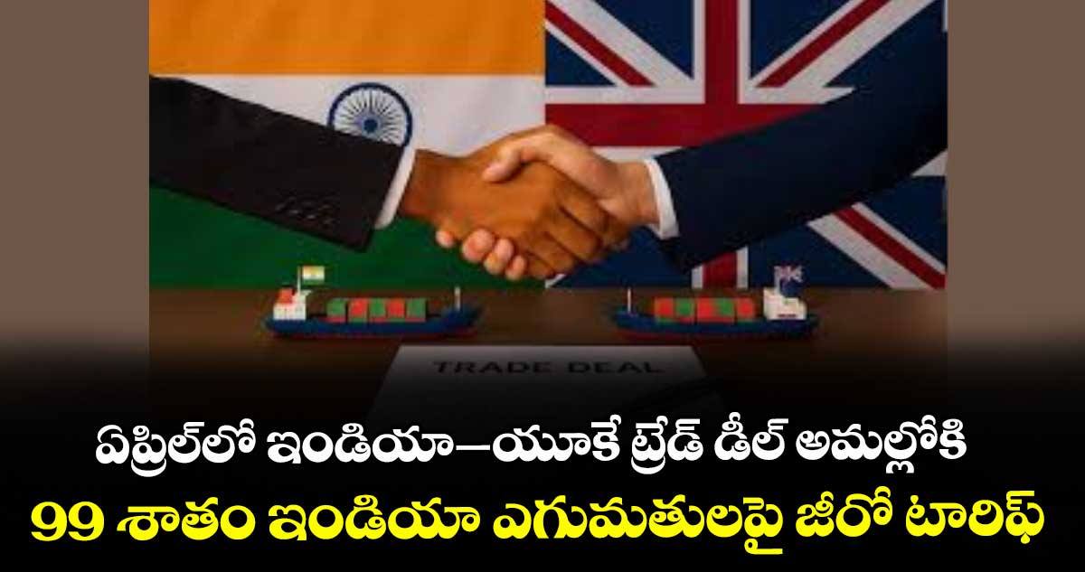 న్యూఢిల్లీ: ఇండియా– యూకే మధ్య గతేడాది కుదిరిన కాంప్రెహెన్సివ్ ఎకనామిక్ అండ్ ట్రేడ్ అగ్రిమెంట్ (సీఈటీఏ) ఈ ఏడాది ఏప్రిల్లో అమలులోకి వచ్చే అవకాశం ఉందని ప్రభుత్వ వర్గాలు పేర్కొన్నాయి. ఈ ఒప్పందం కింద భారతదేశం నుంచి బ్రిటన్కి ఎగుమతి అయ్యే 99శాతం వస్తువులపై టారిఫ్ ఉండదు. మరోవైపు, యూకే ఉత్పత్తులపై భారతదేశంలో టారిఫ్లు తగ్గుతాయి. ఉదాహరణకు, స్కాచ్ విస్కీపై సుంకం 150శాతం నుంచి వెంటనే 75శాతానికి తగ్గి, 2035 నాటికి 40 శాతానికి చేరుతుంది. కార్లపై దిగుమతి సుంకం ఐదు సంవత్సరాల్లో 110శాతం నుంచి 10 శాతానికి దిగొస్తుంది.