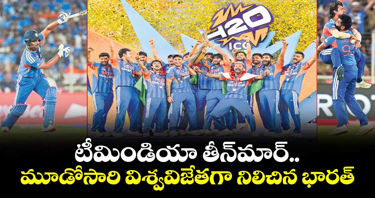 చరిత్ర సృష్టించాలన్నా మేమే.. ఆ చరిత్రను తిరగరాయాలన్నా మేమే అని టీమిండియా మరోసారి గర్జించింది..! అసాధ్యాలను సుసాధ్యం చేస్తూ, ఆతిథ్య జట్టుకు కప్పు దక్కదన్న సెంటిమెంట్ను బద్దలుకొడుతూ మన జట్టు మళ్లీ విశ్వవిజేతగా నిలిచింది. సూర్యకుమార్ యాదవ్ సారథ్యంలో అహ్మదాబాద్ గడ్డపై న్యూజిలాండ్ను మట్టికరిపించి.. టీ20 క్రికెట్ చరిత్రలోనే అత్యధికంగా మూడోసారి వరల్డ్ కప్ను ముద్దాడి తీన్మార్ కొట్టింది. ఇదే నరేంద్ర మోదీ స్టేడియంలో 2023 వన్డే వరల్డ్ కప్ ఫైనల్లో ఆస్ట్రేలియా చేతిలో తగిలిన ఓటమి గాయాన్ని.. ఈ అద్భుత విజయంతో మాన్పుకుంది.