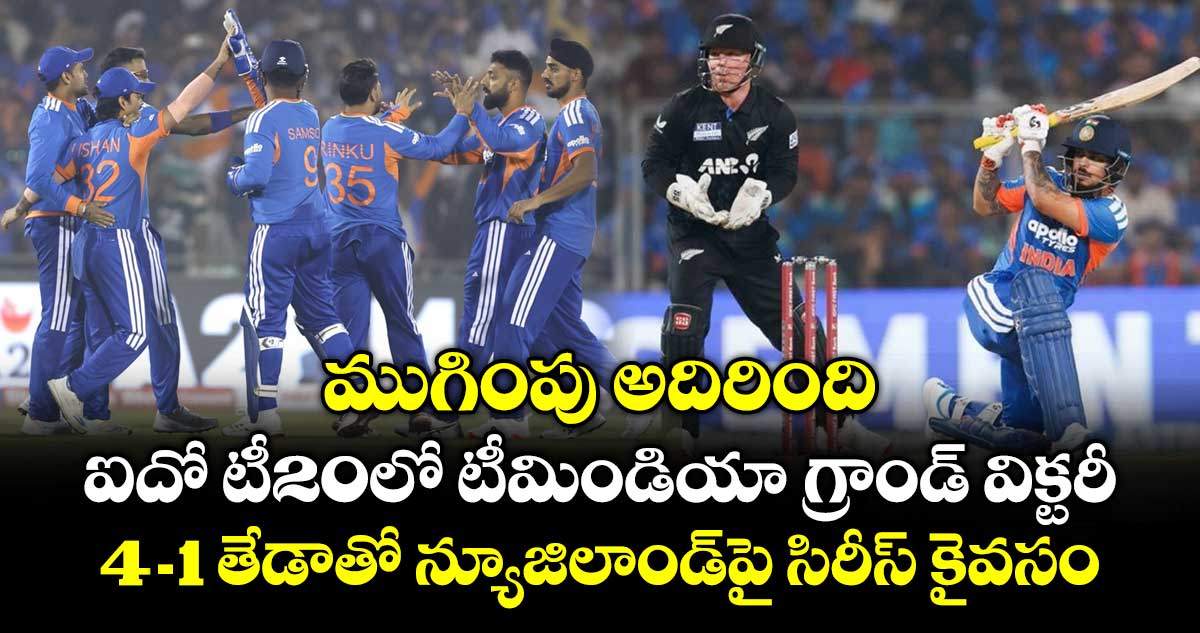 న్యూజిలాండ్ తో జరిగిన ఐదో టీ20లో టీమిండియా అదిరిపోయే విజయాన్ని అందుకుంది. బ్యాటర్లు ఆకాశమే హద్దుగా చెలరేగడంతో పాటు బౌలర్లు సమిష్టిగా రాణించడంతో సిరీస్ కు ఘనమైన ముగింపు ఇచ్చింది. శనివారం (జనవరి 31) తిరువనంతపురం వేదికగా గ్రీన్ఫీల్డ్ ఇంటర్నేషనల్ స్టేడియంలో జరిగిన మ్యాచ్ లో న్యూజిలాండ్ పై 46 పరుగుల తేడాతో గెలిచి సిరీస్ ను 4-1 తేడాతో గెలుచుకుంది. ఇషాన్ కిషాన్ (44బంతుల్లో 103: 6 ఫోర్లు, 10 సిక్సర్లు) విధ్వంసక సెంచరీ తో పాటు కెప్టెన్ సూర్య (30 బంతుల్లో 63: 4 ఫోర్లు, 6 సిక్సర్లు) కెప్టెన్ ఇన్నింగ్ తో ఇండియా విజయంలో కీలక పాత్ర పోషించారు. మొదట బ్యాటింగ్ చేసిన ఇండియా నిర్ణీత 20 ఓవర్లలో ఐదు వికెట్ల నష్టానికి 271 పరుగులు చేసింది. ఛేజింగ్ లో న్యూజిలాండ్ 19.4 ఓవర్లలో 225 పరుగులకు ఆలౌటైంది.