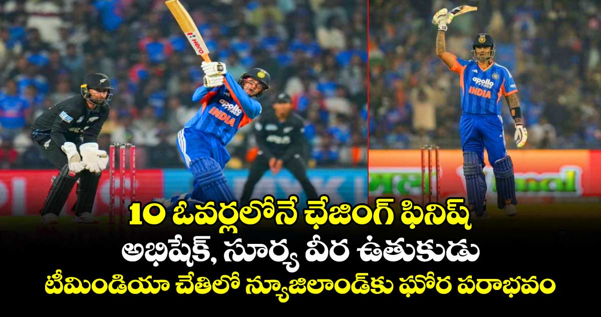 వరుస బౌండరీలతో గ్రౌండ్ ను హోరెత్తించాడు. ఈ క్రమంలో కేవలం 14 బంతుల్లోనే అభిషేక్ తన హాఫ్ సెంచరీ పూర్తి చేసుకోవడం విశేషం. గత మ్యాచ్ లో ఫామ్ లోకి వచ్చిన సూర్య కుదురుకోవడానికి ఎక్కువ సమయం తీసుకోలేదు. అభిషేక్ తో కలిసి బౌండరీల మోత మోగించాడు. వీరిద్దరి విధ్వంసానికి ఇండియా మరో 10 ఓవర్లు ముంగిలి ఉండగానే విజయం సాధించింది. న్యూజిలాండ్ బౌలర్లలో హెన్రీ, సోది తలో వికెట్ పడగొట్టారు. సూర్య 26 బంతుల్లోనే 57 పరుగులు.. అభిషేక్ శర్మ 20 బంతుల్లోనే 68 పరుగులు చేసి అజేయంగా నిలిచారు