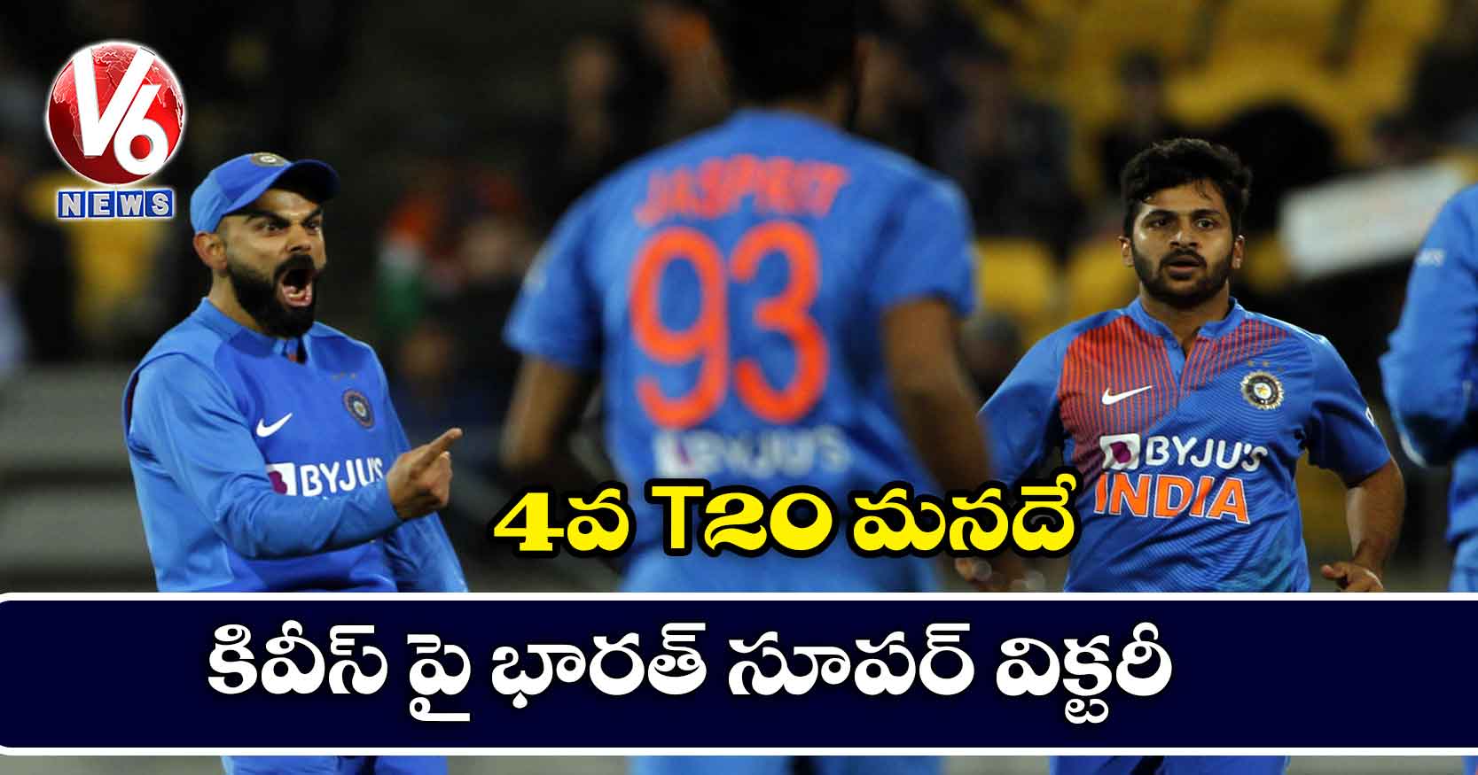 వెల్లింగ్టన్: ఐదు టీ20ల సిరీస్ లో భాగంగా శుక్రవారం న్యూజిలాండ్ తో జరిగిన 4వ టీ20లో భారత్ విజయం సాధించింది. డ్రాగా ముగిసిన మ్యాచ్ లో సూపర్ విక్టరీ కొట్టింది టీమిండియా. సూపర్ ఓవర్ లో 14 పరుగుల టార్గెట్ తో బరిలోకి దిగిన భారత్ మరో బాల్ ఉండగానే గెలిచింది. ఇప్పటికే ఆడిన 3 మ్యాచ్ లు గెలిచి సిరీస్ కైవసం చేసుకున్న భారత్.. ఇవాళ జరిగిన 4వ టీ20 మ్యాచ్ కూడా గెలిచి సత్తా చాటింది. డ్రాగా ముగిసిన మూడో టీ20లోనూ థ్రిల్లింగ్ విక్టరీతో గెలిచిన భారత్ సిరీస్ ను కైవసం చేసుకున్న విషయం తెలిసిందే. దీంతో ఒకే సిరీస్ లో 2 టై మ్యాచ్ లు కావడం విశేషం.