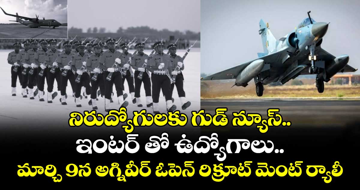 తెలంగాణ, ఏపీ యువతకు గుడ్ న్యూస్..భారత వైమానిక దళంలోకి చేరేందుకు గొప్ప అవకాశం.. ఇంటర్, పాలిటెక్నికల్ డిప్లామా అర్హతతో ఎయిర్ ఫోర్స్ లో ఉద్యోగాలు పొందవచ్చు. మార్చి 8నుంచి అగ్నివీర్ ఓపెన్ రిక్రూట్ మెంట్ ర్యాలీ నిర్వహిస్తోంది ఇండియన్ ఎయిర్ ఫోర్స్.