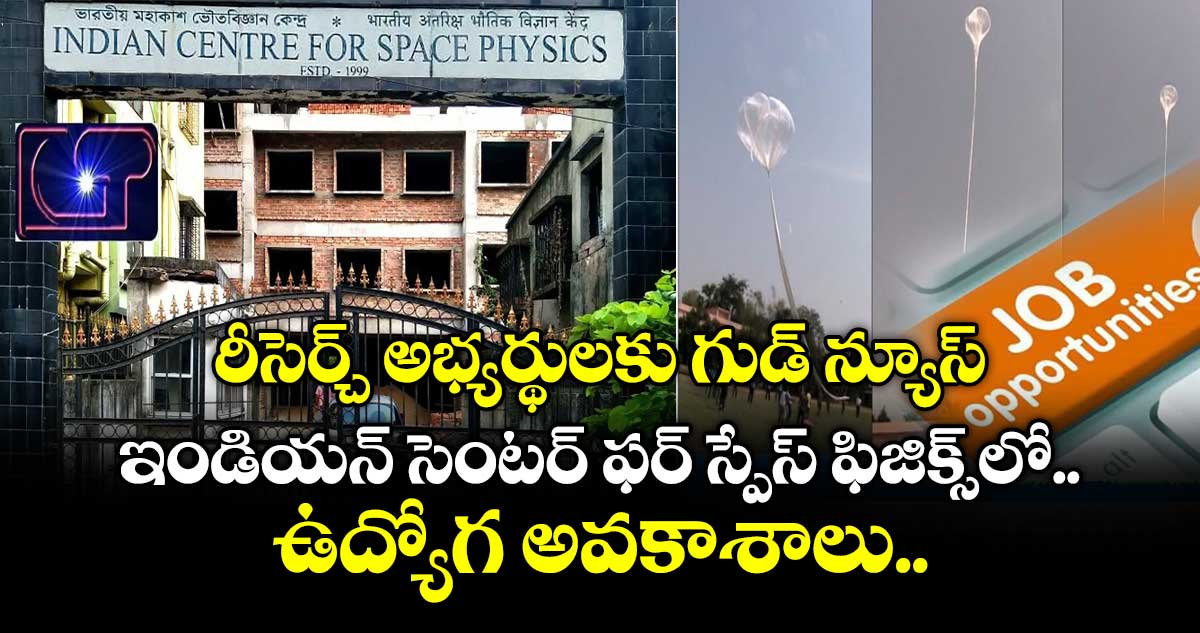 ఇండియన్ సెంటర్ ఫర్ స్పేస్ ఫిజిక్స్ (ఐసీఎస్పీ) జూనియర్ రీసెర్చ్ ఫెలో, సైంటిస్ట్ –బి, ఇతర పోస్టుల భర్తీకి నోటిఫికేషన్ విడుదల చేసింది.ఆసక్తి, అర్హత గల అభ్యర్థులు ఆఫ్లైన్లో అప్లై చేసుకోవచ్చు.