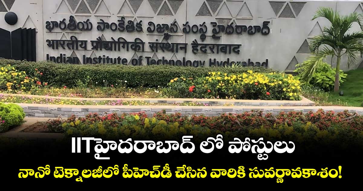 ఇండియన్ ఇన్స్టిట్యుట్ ఆఫ్ హైదరాబాద్ (ఐఐటీహెచ్) పోస్ట్ డాక్టోరల్ (నానో టెక్నాలజీ) పోస్టుల భర్తీకి నోటిఫికేషన్ విడుదల చేసింది.