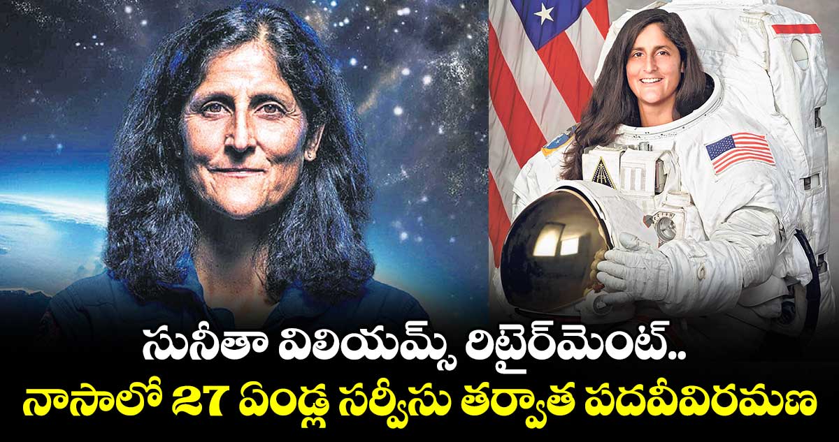 భారత సంతతి అమెరికన్ వ్యోమగామి (ఆస్ట్రొనాట్) సునీతా విలియమ్స్ రిటైర్ అయ్యారు. ఆమె మొత్తం మూడు మిషన్లలో పాల్గొని స్పేస్ లో 608 రోజులు గడిపారు. ఆమె 9 స్పేస్ వాక్లు చేసి 62 గంటల 6 నిమిషాలు స్పేస్ లోనే ఉన్నారు. స్పేస్లో మారథాన్ చేసిన మొదటి వ్యక్తిగానూ రికార్డు సృష్టించారు.