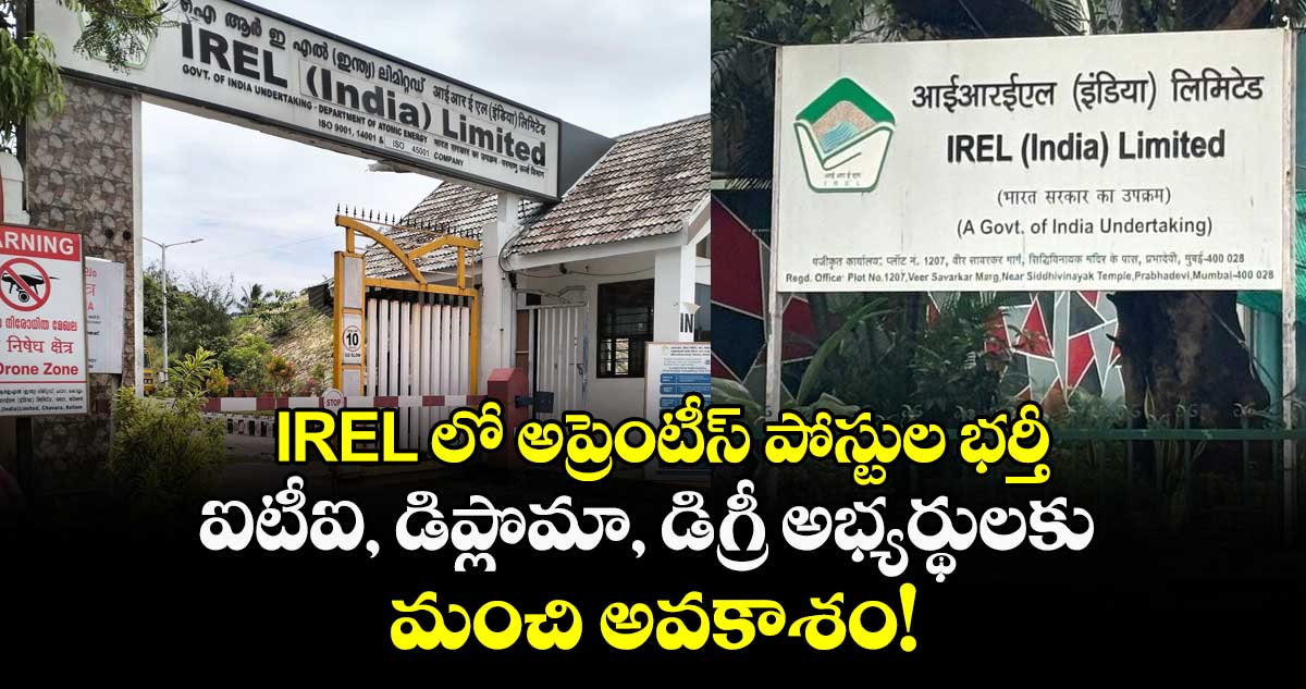 ఇండియన్ రేర్ ఎర్త్స్ లిమిటెడ్ (IREL) అప్రెంటీస్ పోస్టుల భర్తీకి నోటిఫికేషన్ విడుదల చేసింది. ఆసక్తి, అర్హతగల అభ్యర్థులు ఆన్లైన్లో అప్లై చేసుకోవచ్చు. అప్లికేషన్ సమర్పించడానికి చివరి తేదీ మార్చి 15.