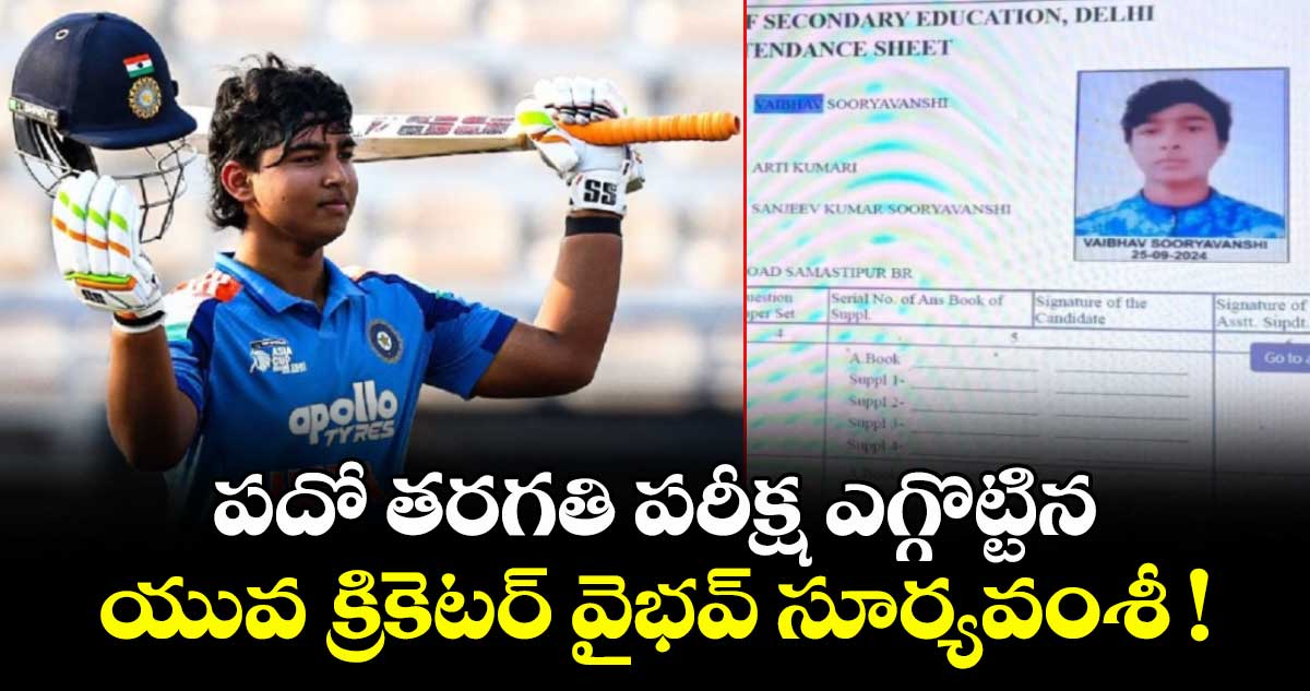 CBSE పదవ తరగతి పరీక్షలు మంగళవారం (ఫిబ్రవరి 17, 2026) నుంచి మొదలయ్యాయి. టీమిండియా అండర్-19 క్రికెటర్ వైభవ్ సూర్యవంశీ కూడా ఈ పరీక్షలకు హాజరు కావాల్సి ఉంది. బీహార్లోని సమస్తిపూర్ పోడార్ ఇంటర్నేషనల్ స్కూ్ల్ అతని ఎగ్జామ్ సెంటర్. అయితే.. వైభవ్ సూర్యవంశీ తొలి రోజు జరిగిన ఎగ్జామ్కు అటెండ్ అవలేదని.. సీబీఎస్ఈ పాలసీ ప్రకారం.. అతను గైర్హాజరయినట్లు మార్క్ చేశామని పోడార్ ఇంటర్నేషనల్ స్కూల్ ప్రిన్సిపాల్ ఎన్కే సిన్హా మీడియాకు తెలిపారు.