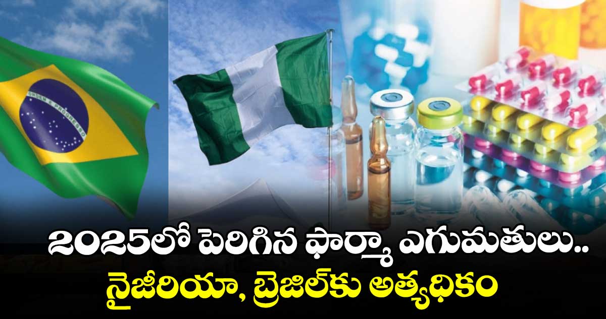 న్యూఢిల్లీ: భారత ఫార్మా ఎగుమతులు 2025–-26 ఆర్థిక సంవత్సరంలో భారీగా పెరిగాయి. వాణిజ్య మంత్రిత్వ శాఖ డేటా ప్రకారం, బ్రెజిల్, నైజీరియా కొత్త ప్రధాన గమ్యస్థానాలుగా ఎదుగుతున్నాయి. ప్రస్తుత ఆర్థిక సంవత్సరంలోని మొదటి ఎనిమిది నెలల్లో నైజీరియాకు 179 మిలియన్ డాలర్ల విలువైన ఫార్మా ఎగుమతులు పెరిగాయి.