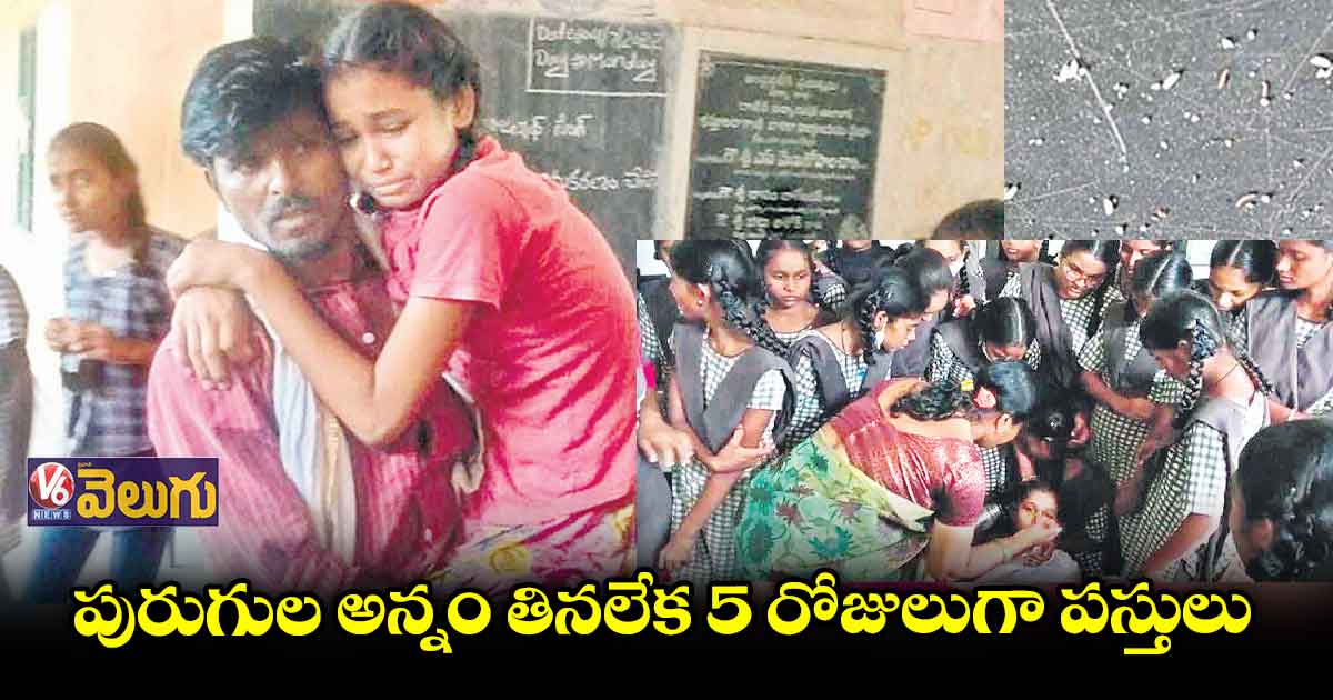 మా స్కూల్లో ఐదు రోజులుగా పురుగుల అన్నం పెడ్తున్నరు. మొదటి రోజు అన్నంలో పురుగులు చూసి పడేసిన. తెల్లవారి కూడా పురుగులు వచ్చాయి. దీంతో 4రోజులుగా ఖాళీ కడుపుతో ఉంటున్న. సోమవారం కండ్లు తిరిగి కింది పడిపోయిన. ప్రిన్సిపాల్ మేడంకు చెప్పినా పట్టించుకోలేదు.