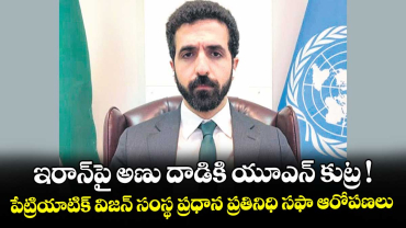 Read Moreఇరాన్పై అణు దాడికి యూఎన్ కుట్ర ! పేట్రియాటిక్ విజన్ సంస్థ ప్రధాన ప్రతినిధి సఫా ఆరోపణలు