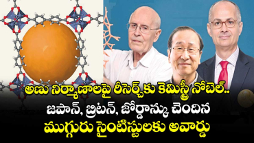 Read Moreఅణు నిర్మాణాలపై రీసెర్చ్కు కెమిస్ట్రీ నోబెల్.. జపాన్, బ్రిటన్, జోర్డాన్కు చెందిన ముగ్గురు సైంటిస్టులకు అవార్డు