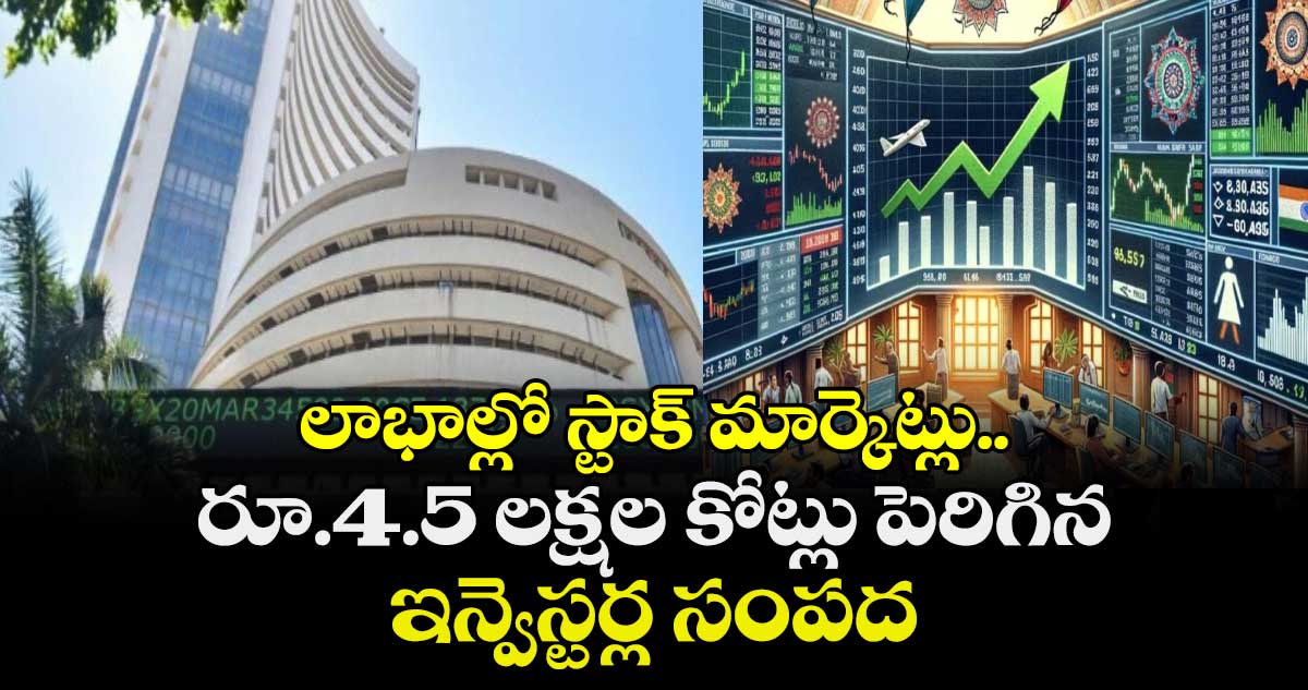 ముంబై:స్టాక్ మార్కెట్లు సోమవారం భారీ లాభాలతో ముగిశాయి. విదేశీ పెట్టుబడులు అధికంగా రావడంతో పాటు అంతర్జాతీయ మార్కెట్లలో సానుకూల ధోరణి ఉండటం ఇన్వెస్టర్లలో ఉత్సాహం నింపింది. ఐటీ, ఆటో, మెటల్ రంగాల షేర్లలో భారీగా కొనుగోళ్లు జరిగాయి. అమెరికా ఫెడరల్ రిజర్వ్ వడ్డీ రేట్లను రానున్న కాలంలో మరింత తగ్గిస్తుందనే అంచనాలు అంతర్జాతీయంగా మార్కెట్ల ర్యాలీకి కారణమయ్యాయి. ఈ సానుకూల ప్రభావం భారత మార్కెట్లపై స్పష్టంగా కనిపించింది. సెన్సెక్స్ 638.12 పాయింట్లు పెరిగి 85,567.48 వద్ద స్థిరపడింది. నిఫ్టీ 206 పాయింట్లు లాభపడి 26,172.40 వద్ద ముగిసింది. ఇది 26,100 కీలక స్థాయిని నిఫ్టీ అధిగమించడం విశేషం. దీంతో ఇన్వెస్టర్ల సంపద సుమారు రూ.4.5 లక్షల కోట్లు పెరిగింది. బీఎస్ఈ లో లిస్ట్ అయిన కంపెనీల మొత్తం మార్కెట్ క్యాపిటలైజేషన్ మునుపటి సెషన్ లో ఉన్న రూ.487 లక్షల కోట్ల నుంచి దాదాపు రూ.491.5 లక్షల కోట్లకు చేరింది. సెన్సెక్స్ కంపెనీల్లో ట్రెంట్ షేరు 3.56 శాతం లాభంతో మొదటిస్థానంలో నిలిచింది. ఐటీ షేర్లు మార్కెట్ పుంజుకోవడంలో కీలక పాత్ర పోషించాయి. ఇన్ఫోసిస్ 3.06 శాతం పెరగ్గా, టెక్ మహీంద్రా 2.09 శాతం లాభపడింది. హెచ్సీఎల్ టెక్ 1.67 శాతం, టీసీఎస్ 1.28 శాతం మేర వృద్ధిని కనబరిచాయి. వీటితోపాటు భారతీ ఎయిర్టెల్, భారత్ ఎలక్ట్రానిక్స్, టాటా మోటార్స్, రిలయన్స్, మారుతీ షేర్లు కూడా పెరిగాయి. ఎఫ్ఐఐలు తిరిగి కొనుగోళ్ల వైపు మొగ్గు చూపడం ఐటీ రంగం రాణించడానికి దోహదం చేసిందని ఎనలిస్టులు తెలిపారు.