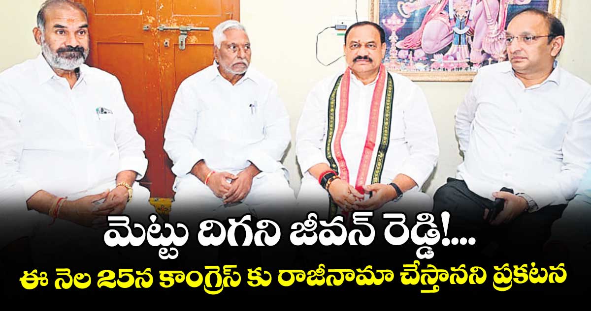 ఇదివరకు మంత్రులు శ్రీధర్ బాబు, అడ్లూరి లక్ష్మణ్, ఎమ్మెల్యే మేడిపల్లి సత్యం కూడా ఆయనను కలిసి బుజ్జగించేందుకు చేసిన ప్రయత్నాలు కూడా విఫలమయ్యాయి. పీసీసీ చీఫ్ వచ్చినా జీవన్ రెడ్డి పంతం వీడలేదు. ఈ నెల 25న కాంగ్రెస్ పార్టీకి, సభ్యత్వానికి రాజీనామా చేసి అభిమానులతో జరిగే సమావేశంలో భవిష్యత్ కార్యాచరణ ప్రకటించనున్నట్లు తెలుస్తోంది. పీసీసీ చీఫ్ మహేశ్ గౌడ్ సమావేశం అనంతరం జీవన్ రెడ్డి ఇంటిపై ఇందిరా భవన్ పేరుతో ఉన్న బోర్డును కార్యకర్తలు తొలగించారు.