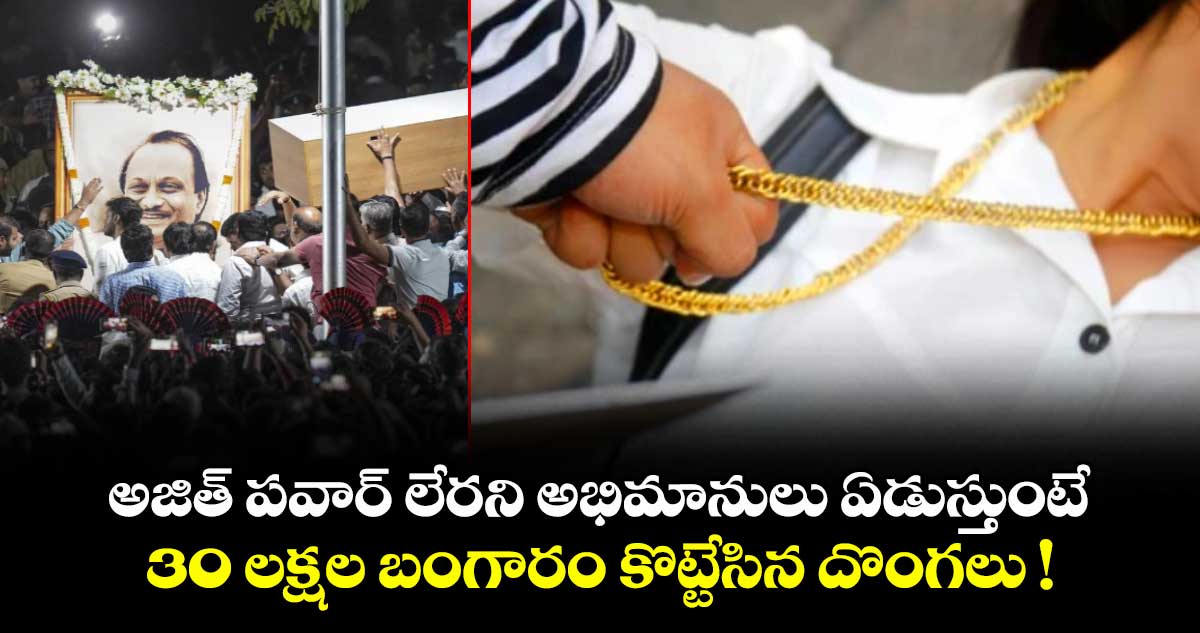 బంగారం ధరలు భారీగా పెరగడంతో దొంగలు రోజురోజుకూ రెచ్చిపోతున్నారు. అజిత్ పవార్ను చివరి చూపు చూసేందుకు వేల మంది ఆయన అభిమానులు బారామతి వెళ్లిన సంగతి తెలిసిందే. ఈ సమయంలో అభిమానుల్లో కలిసిపోయిన దొంగలు తమ చేతివాటం ప్రదర్శించారు. అజిత్ పవార్ కోసం బారామతికి వెళ్లిన 15 మంది గోల్డ్ చైన్లు మిస్ కావడంతో సదరు బాధితులు లబోదిబోమంటూ పోలీసు స్టేషన్లలో ఫిర్యాదు చేశారు. చోరీకి గురైన ఈ బంగారం విలువ సుమారు 25 నుంచి 30 లక్షల వరకూ ఉంటుందని పోలీసులు తెలిపారు.