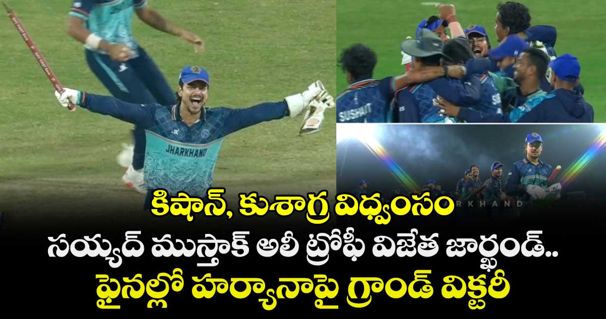 సయ్యద్ ముస్తాక్ అలీ ట్రోఫీని జార్ఖండ్ గెలుచుకుంది. ఫైనల్లో హర్యానాపై గ్రాండ్ విజయం సాధించి టైటిల్ తమ ఖాతాలో వేసుకుంది. గురువారం (డిసెంబర్ 18) పూణే వేదికగా మహారాష్ట్ర క్రికెట్ అసోసియేషన్ స్టేడియంలో జరిగిన తుది సమరంలో 69 పరుగుల తేడాతో ఈజీ విక్టరీ కొట్టింది. మొదట బ్యాటింగ్ లో ఇషాన్ కిషాన్ (101) సెంచరీకి తోడు కుశాగ్ర (81) మెరుపు ఇన్నింగ్స్ ఆడడంతో పాటు.. బౌలర్లు సమిష్టిగా రాణించి జట్టు విజయంలో కీలక పాత్ర పోషించారు. మొదట బ్యాటింగ్ చేసిన జార్ఖండ్ నిర్ణీత 20 ఓవర్లలో 3 వికెట్ల నష్టానికి 262 పరుగులు చేసింది. ఛేజింగ్ లో హర్యానా 18.3 ఓవర్లలో 193 పరుగులకు ఆలౌటైంది.