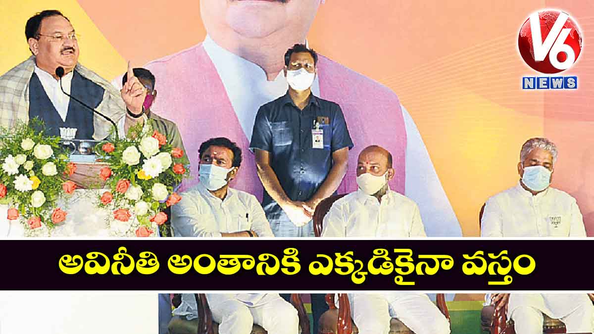 హైదరాబాద్లో మార్పు అనివార్యమని నడ్డా అభిప్రాయపడ్డారు. దుబ్బాకలో బీజేపీని గెలిపించినందుకు ప్రజలకు ధన్యవాదాలు తెలిపారు. ‘‘2014 లోక్సభ ఎన్నికల్లో రాష్ట్రంలో 10.5 శాతం ఓట్లు, ఒక ఎంపీ సీటు గెలుచుకున్నాం. 2019 ఎన్నికల్లో 23.5 శాతం ఓట్లు, 4 ఎంపీ సీట్లు సాధించాం. దుబ్బాక ఉప ఎన్నికలో 38.47 శాతం ఓట్లు సాధించాం” అని తెలిపారు. గత లోక్సభ ఎన్నికల్లో కేసీఆర్ కూతురును 70 వేల ఓట్లతో చిత్తుగా ఓడించామని చెప్పారు.