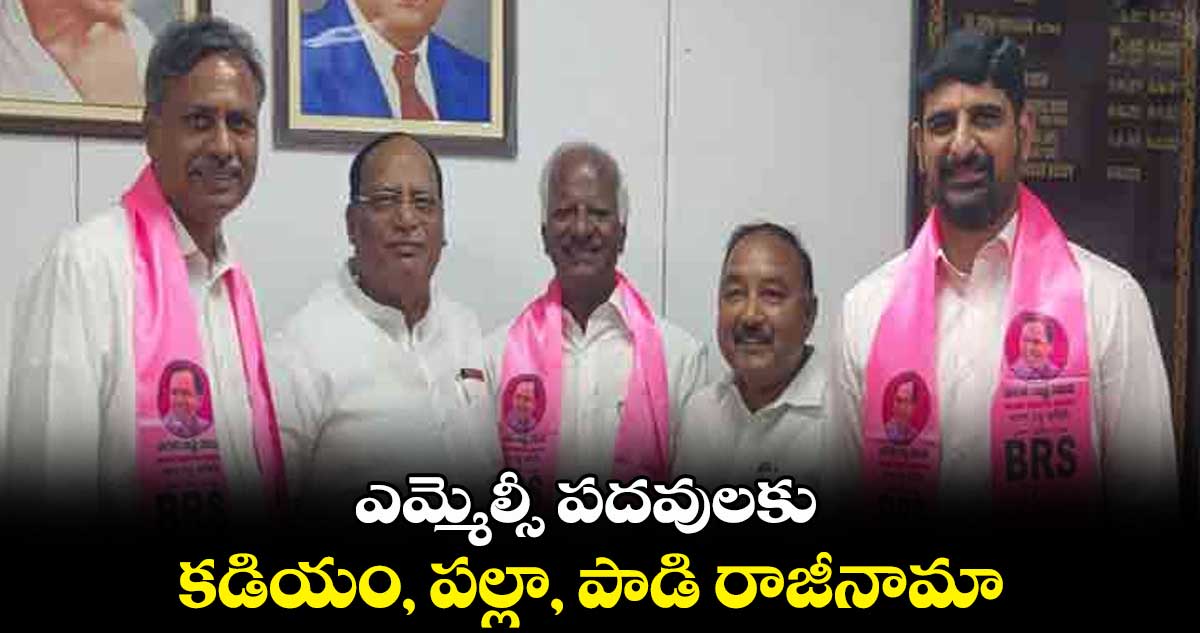 హైదరాబాద్, వెలుగు: ఎమ్మెల్సీ పదవులకు కడి యం శ్రీహరి, పల్లా రాజేశ్వర్రెడ్డి, పాడి కౌశిక్రెడ్డి రాజీనామా చేశారు. శనివారం మండలి చైర్మన్ గుత్తా సుఖేందర్రెడ్డికి రాజీనామా లేఖలు అందజేశారు. కడియం, కౌశిక్రెడ్డి ఎమ్మెల్యే కోటాలో, పల్లా రాజేశ్వర్రెడ్డి నల్గొండ, వరంగల్, ఖమ్మం పట్టభద్రుల నియోజకవర్గం నుంచి ఎమ్మెల్సీలుగా కొనసాగుతున్నారు. అసెంబ్లీ ఎన్నికల్లో స్టేషన్ఘన్పూర్ నుంచి కడియం, జనగామ నుంచి పల్లా, హుజూరాబాద్ నుంచి కౌశిక్రెడ్డి ఎమ్మెల్యేలుగా గెలుపొందిన విషయం తెలిసిందే.