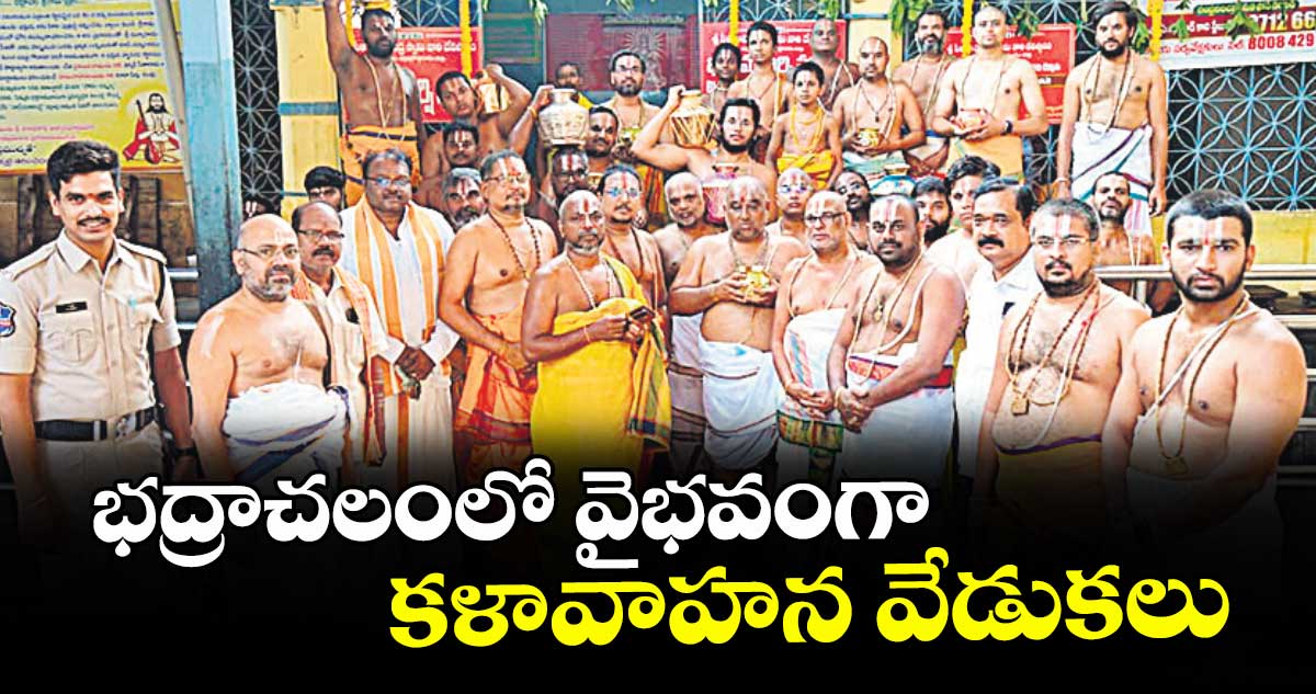 చుట్టు ఉన్న 15 ఆలయాల్లోని 72 దేవతామూర్తులను కలశాల్లో ఆవాహన చేసి కళావాహన వేడుకను జరిపారు. తర్వాత 72 దేవతామూర్తులను, కలశాలను రంగనాయకుల గుట్టపై ఉన్న ధ్యాన మందిరంలో ఏర్పాటు చేసిన బాలాలయంలో ప్రతిష్ఠించారు. ఈ కార్యక్రమంలో భద్రాచలం అర్చకులతో పాటు యాదగిరిగుట్ట, సింహాచలం, ధర్మపురి ఆలయాల నుంచి వచ్చిన అర్చకులు పాల్గొన్నారు. కళావాహన వేడుక సందర్భంగా ఆదివారం తెల్లవారుఝాము నుంచే భక్తులకు దర్శనాలను నిలిపివేయగా.. సాయంత్రం 3 గంటల నుంచి దర్శనాలకు అనుమతి ఇచ్చారు.