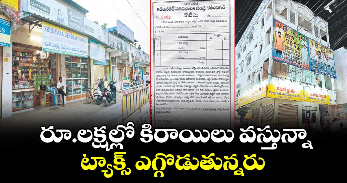 కరీంనగర్ తహసీల్దార్ ఆఫీసు నుంచి రూ.28.42 లక్షలు, రెవెన్యూ క్లబ్ ప్రెసిడెంట్ పేరిట ఉన్న హౌస్ నుంచి రూ.7.85 లక్షలతోపాటు రెవెన్యూ క్లబ్ పేరిట ఉన్న మరో 35 షట్టర్లు, షాపుల నుంచి రూ.90 లక్షలకుపైగా ప్రాపర్టీ ట్యాక్స్ వసూలు కావాల్సి ఉంది. ట్యాక్స్ చెల్లించకపోయినా 24 ఏళ్లుగా అధికారులు పట్టించుకోకపోవడంపై విమర్శలు వ్యక్తమవుతున్నాయి.