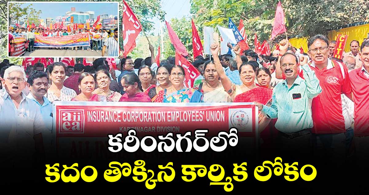 కరీంనగర్ టౌన్,వెలుగు: కేంద్ర కార్మిక సంఘాలు పిలుపు మేరకు గురువారం నిర్వహించిన సమ్మెలో కార్మికులు కదం తొక్కారు. కరీంనగర్లో ఇండియా ఇన్సూరెన్స్ ఎంప్లాయిస్ అసోసియేషన్(ఏఐఐఈఏ), ఎల్ఐసీ కరీంనగర్ డివిజన్ ఇన్సూరెన్స్ కార్పొరేషన్ ఎంప్లాయిస్ యూనియన్(ఐసీఈయూ) ఆధ్వర్యంలో ర్యాలీ నిర్వహించారు. తెలంగాణ చౌక్, గీతాభవన్ చౌరస్తా మీదుగా కలెక్టరేట్ వరకు, మంచిర్యాల చౌరస్తా నుంచి కోర్టు వరకు ర్యాలీ నిర్వహించారు.