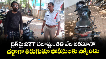 Read Moreబైక్ పై 277 చలాన్లు.. 80 వేల జరిమానా..దర్జాగా తిరుగుతూ పోలీసులకు చిక్కిండు