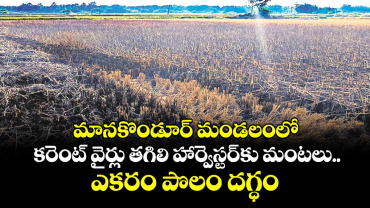 తిమ్మాపూర్(మానకొండూర్), వెలుగు: వరి కోస్తుండగా హార్వెస్టర్కు కరెంట్ వైర్లు తగిలి షార్ట్ సర్క్యూట్ అయి పొలం కాలిపోయిన ఘటన కరీంనగర్ జిల్లా మానక