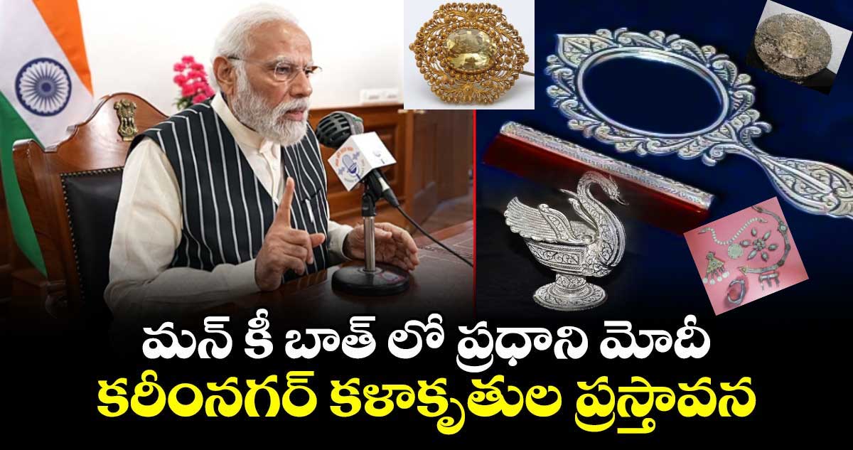 ఎప్పటిలాగే ప్రధాని మోదీ తన 128వ మన్ కీ బాత్ ప్రోగ్రాం ను ఆదివారం (నవంబర్30) న నిర్వహించారు. ఈ కార్యక్రమంలో తెలంగాణలోని కరీంనగర్ ప్రస్తావన తెచ్చారు ప్రధాని మోదీ. కరీంనగర్ లో తయారైన సాంప్రదాయ కళాకృతులు ప్రపంచవ్యాప్తంగా ప్రసిద్ధి చెందాయన్నారు. కరీంనగర్ కళాకృతులన వివిధ దేశాల ప్రధాన మంత్రులకు బహుకరించానని మోదీ తెలిపారు. కరీంనగర్ లో ప్రసిద్ధి చెందిన సాంప్రదాయ సిల్వర్ తో తయారైన బుద్ధుడు ప్రతిమను జపాన్ ప్రధానికి, సంప్రదాయ పూల ఆకృతితో ఉన్న సిల్వర్ మిర్రర్ ను ఇటలీ ప్రధానికి బహుకరించానని ప్రధాని మోదీ చెప్పారు.