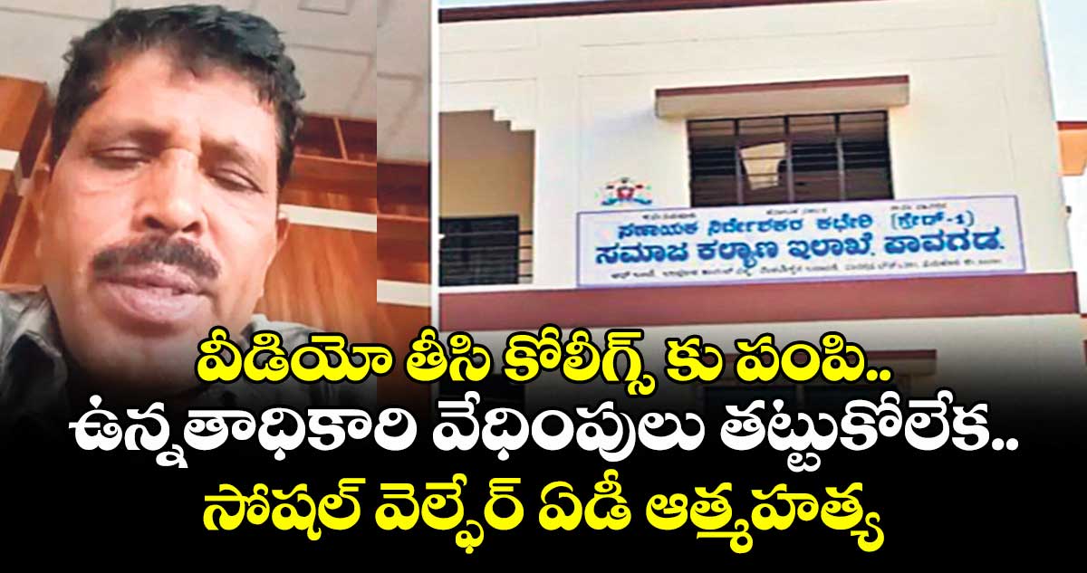 బెంగళూరు: కర్ణాటకలోని తుమకూరు జిల్లాలో విషాద ఘటన చోటుచేసుకుంది. సోషల్ వెల్ఫేర్ శాఖ అసిస్టెంట్ డైరెక్టర్ మల్లి కార్జున్ కార్యాలయంలోనే ఉరి వేసుకుని ఆత్మహత్య చేసుకున్నారు. పావగడలోని అప్పా బండే ప్రాంతంలో ఉన్న కార్యాలయంలో శుక్రవారం సాయంత్రం ఈ ఘటన జరిగింది.