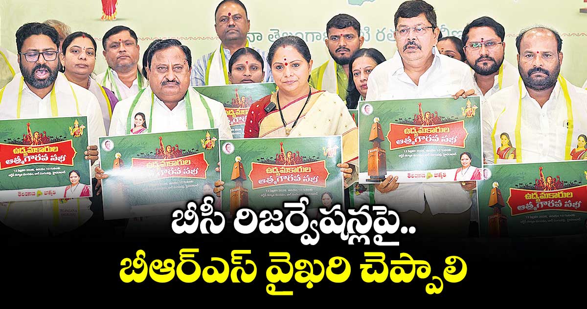 ఈ నెల 12న నిర్వహించనున్న ఉద్యమకారుల ఆత్మగౌరవ సభ పోస్టర్ను ఆమె శుక్రవారం హైదరాబాద్లోని జాగృతి ఆఫీసులో ఆవిష్కరించారు. అనంతరం మీడియాతో మాట్లాడారు. మాధవ్ రెడ్డికి బీఆర్ఎస్ టికెట్ఇచ్చిందంటే.. హైకోర్టులో కేసును బీఆర్ఎస్ పార్టీనే వేయించినట్టు ఉందన్నారు. మాధవ్ రెడ్డి అనే వ్యక్తి హరీశ్ రావుకు దగ్గరని, హరీశ్ పర్సనల్ లాయరే ఈ కేసు వేయించారని ఆరోపించారు. తెలంగాణలో 56 శాతం ఉన్న బీసీల నోటికాడి బుక్క గుంజుకునే ప్రయత్నం చేసిన వ్యక్తికి టికెట్ ఎలా ఇస్తారని నిలదీశారు. బీసీల విషయంలో బీఆర్ఎస్కు చిత్తశుద్ధి లేదన్నారు. బీసీ ప్రజాప్రతినిధుల ఫోరమ్పేరుతో మీటింగ్లు పెట్టిన బీఆర్ఎస్ .. పార్టీపరంగా ఒక్క మీటింగ్ కూడా నిర్వహించలేదన్నారు. జనగణన విషయంలో కన్ఫ్యూజ్ చేశారని, మళ్లీ వాళ్లే జనగణన చేయాలంటూ డిమాండ్ చేశారని పేర్కొన్నారు.