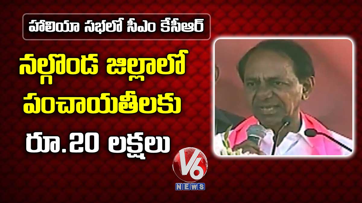 హాలియా: నల్గొండ జిల్లా వాసులకు సీఎం కేసీఆర్ శుభవార్త చెప్పారు. బుధవారం హాలియా బహిరంగ సభలో మాట్లాడిన కేసీఆర్.. సభ ప్రారంభంలో ముఖ్యమైన నాలుగు వరాలు ప్రకటించారు. ప్రస్తుత నల్గొండ జిల్లాలో 844 గ్రామాలున్నాయని.. ప్రతి గ్రామ పంచయతీకి రూ.20 లక్షల చొప్పున కేటాయిస్తున్నట్లు చెప్పారు. ఈలాగే నల్గొండ జిల్లాలోని మండల కేంద్రానికి రూ.30 లక్షల చొప్పున, నల్గొండ జిల్లా కేంద్రానికి రూ.10 కోట్లు కేటాయిస్తున్నట్లు ప్రకటించారు సీఎం కేసీఆర్. అలాగే మిర్యాలగూడ మున్సిపాలిటీకి రూ.5 కోట్లు, మిగతా ఒక్కో మున్సిపాలిటీకి రూ. కోటి కేటియిస్తున్నట్లు తెలిపారు సీఎం కేసీఆర్.