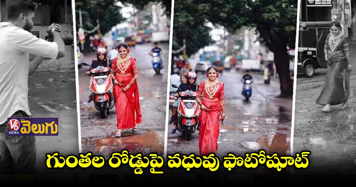 మామూలుగా పెళ్లికి సంబంధించిన ఫొటోషూట్ అంటే బ్యూటీఫుల్ ప్లేసెస్, మౌంటెన్స్, చెట్లు, గార్డెనింగ్.. ఇలా రకరకాలుగా ఆలోచిస్తారు. కానీ ఓ వధువు మాత్రం వీటన్నింటికీ భిన్నంగా ఆలోచించింది. తన వివాహం సందర్భంగా ఫొటోషూట్ కు సిద్ధమైన కేరళకు చెందిన ఓ పెళ్లికూతురు.. గుంతలు పడ్డ రోడ్డుపై నడుస్తూ ఫొటోలకు ఫోజిచ్చింది. పెళ్లి కుమార్తె గెటప్ లో ముస్తాబై నగలు ధరించి గుంతల్లో నీరు నిలిచిన రోడ్డుపై నడుచుకుంటూ వెళ్తూ ఫొటోలు దిగింది.