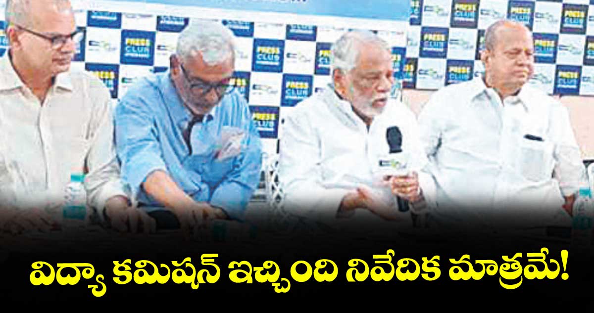 పంజాగుట్ట, వెలుగు: ఎడ్యుకేషన్ పాలసీపై విద్యా కమిషన్ ఇటీవల ఇచ్చింది నివేదిక మాత్రమేనని ప్రభుత్వ సలహాదారు కే కేశవరావు అన్నారు. ఈ నివేదికను 20 రోజుల్లో పబ్లిక్ డొమైన్లో ఉంచుతామన్నారు. ప్రజలు, విద్యార్థులు, ఉపాధ్యాయుల నుంచి వచ్చే సలహాల మేరకు మార్పులు చేసి తుది రూపు ఇస్తామన్నారు. ఉపాధ్యాయులు ఆందోళన చెందాల్సిన అవసరం లేదని.. జీతాల తగ్గింపు ఉండదని హామీ ఇచ్చారు.