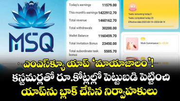 Read Moreఎంఎస్క్యూ యాప్ ‘మాయాజాలం’!.. కస్టమర్లతో రూ.కోట్లల్లో పెట్టుబడి పెట్టించి యాప్ను బ్లాక్ చేసిన నిర్వాహకులు