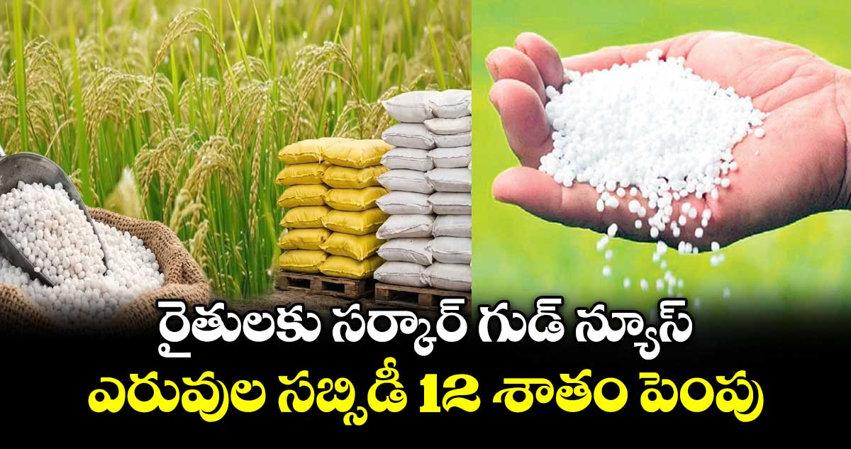 న్యూఢిల్లీ: రైతులకు కేంద్రం ప్రభుత్వం ఊరట కలిగించే నిర్ణయం తీసుకుంది. పశ్చిమాసియాలో నెలకొన్న యుద్ధ పరిస్థితుల నేపథ్యంలో ఫోస్ఫాటిక్ అండ్ పొటాసిక్ (పీ అండ్ కే) ఎరువులపై సబ్సిడీని 2026 ఖరీఫ్ సీజన్ కు 12 శాతానికి పెంచింది. దీంతో ఈ మొత్తాన్ని రూ.41,534 కోట్లకు పెంచినట్లయింది. పీ అండ్ కే ఫర్టిలైజర్లపై సబ్సిడీ 2025 సీజన్ కు రూ.37,216 కోట్లు ఉండగా.. ఈసారి అది రూ.4,318 కోట్లకు పెరిగింది. ప్రధాని మోదీ అధ్యక్షతన జరిగిన కేబినెట్ సమావేశంలో కేంద్రం ఈ నిర్ణయం తీసుకుంది.