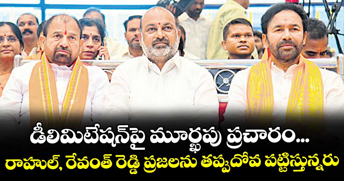 హైదరాబాద్, వెలుగు: నియోజకవర్గాల పునర్విభజన (డీలిమిటేషన్) విషయంలో కాంగ్రెస్ అగ్రనేత రాహుల్ గాంధీ, సీఎం రేవంత్ రెడ్డి ప్రజలను తప్పుదోవ పట్టిస్తున్నారని కేంద్రమంత్రి కిషన్ రెడ్డి ఆరోపించారు. ఆదివారం సోమాజిగూడలోని జయ గార్డెన్స్లో జరిగిన అంబేద్కర్ జయంతి ఉత్సవాల ముగింపు సదస్సులో కేంద్రమంత్రి బండి సంజయ్ కుమార్తో కలిసి ఆయన పాల్గొని మాట్లాడారు.