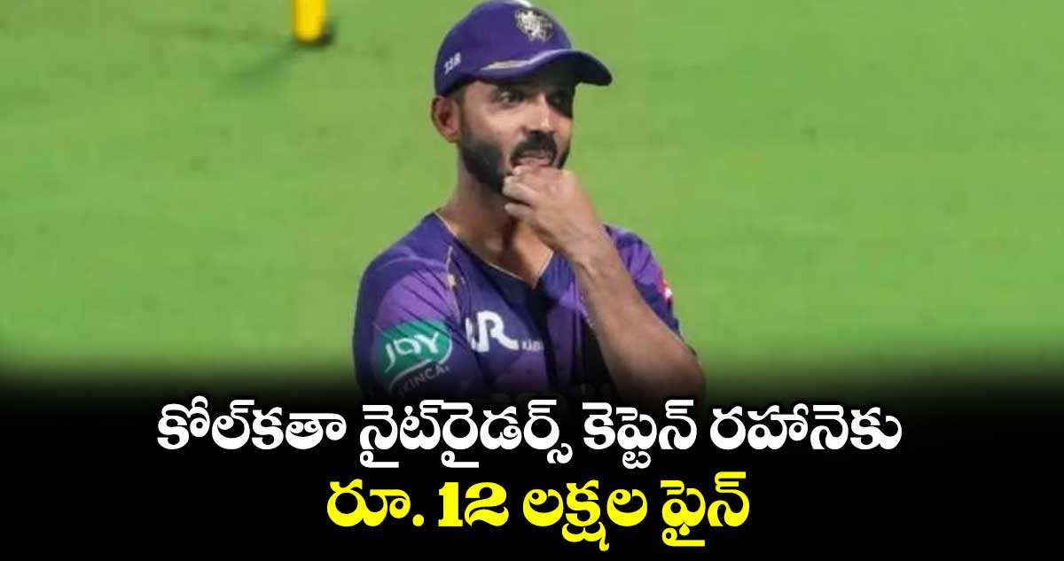 చెన్నై: స్లో ఓవర్ రేట్ కారణంగా కోల్కతా నైట్రైడర్స్ కెప్టెన్ అజింక్యా రహానెకు భారీ జరిమానా పడింది. మంగళవారం చెన్నై సూపర్కింగ్స్తో జరిగిన మ్యాచ్లో నిర్ణీత టైమ్లో ఓవర్ల కోటా పూర్తి చేయనందుకు అతనికి రూ. 12 లక్షల ఫైన్ విధించారు. ఐపీఎల్ కోడ్ ఆఫ్ కండక్ట్లోని ఆర్టికల్ 2.22 రూల్ను రహానె ఉల్లంఘించినట్లు నిర్వాహకులు తేల్చారు.