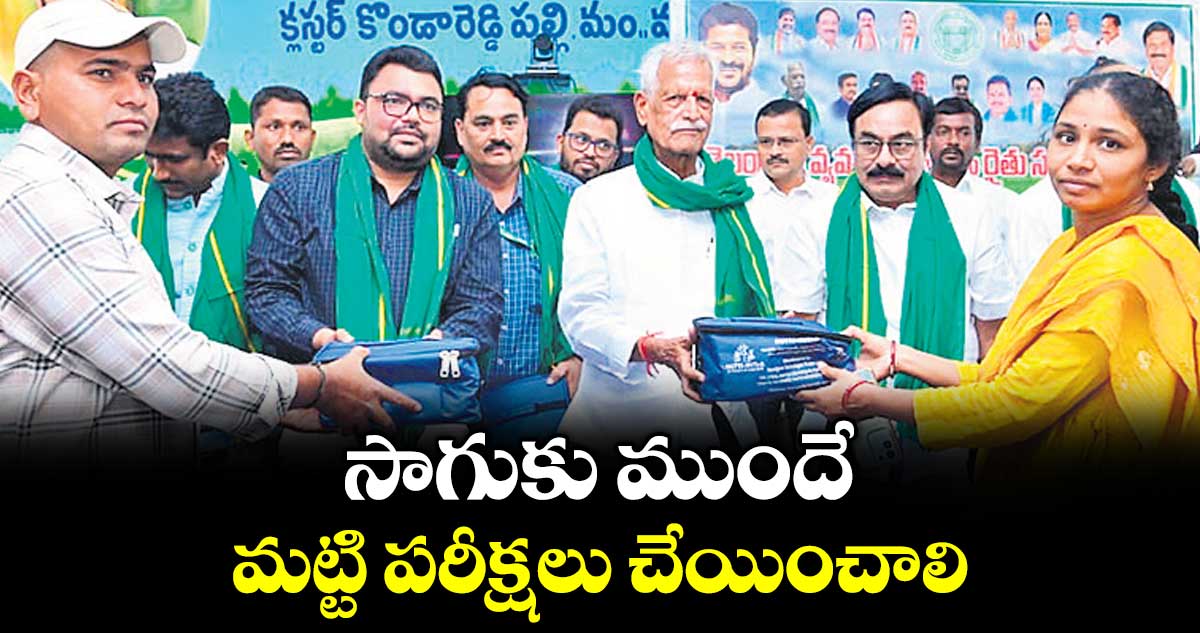 రైతులు నేల ఆరోగ్యాన్ని కాపాడుతూ, ఖర్చులను తగ్గించి, స్థిరమైన వ్యవసాయ విధానాలను అనుసరించాలని సూచించారు. అనంతరం మినీ కిట్లు, భూసార పరీక్షలకు సంబంధించిన పరికరాలను పంపిణీ అందజేశారు. కార్యక్రమంలో రైతు సంక్షేమ కమిషన్ సభ్యులు కేవీయన్ రెడ్డి, చెవిటి వెంకన్న యాదవ్, మరికంటి భవానీరెడ్డి, భూమి సునీల్, రాంగోపాల్రెడ్డి, రాములునాయక్, గంగాధర్, రైతు సంక్షేమ కమిషన్ మెంబర్ సెక్రటరీ గోపాల్, అడిషనల్ డైరెక్టర్లు సుచిత్ర, సంధ్యారాణి, సైంటిస్ట్ బజేంద్ర, డాక్టర్ రాంప్రకాశ్, జిల్లా వ్యవసాయ అధికారి యశ్వంత్ రావు, సర్పంచ్ మల్లెపాకుల వెంకటయ్య పాల్గొన్నారు.